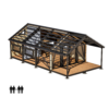 TOILET - Behind the kitchen wall, the space is typically designated for a bathroom, though it can be adapted to meet individual preferences. Glamphouse offers two modular options for the bathroom layout. WC type 1 is spacious open-wall configuration, featuring two extended wooden walls and designed to accommodate a bathtub with shower, sink with cabinet, and a toilet—all of which can be supplied by Glamphouse as part of the complete setup. WC type 2 is fully enclosed WC module, featuring insulated walls, ceiling, and floor for superior thermal and sound insulation. This unit can also be fitted with an aluminum-frame window to allow natural light and ventilation. Both modules are constructed using high-quality Scandinavian pine panels, ensuring strength and ease of installation. Plumbing connections are efficiently integrated beneath the raised floor system, and modifications for fittings or access points can be easily made on-site. These modular areas can also be repurposed for storage, wardrobe space, or other functional uses, depending on the needs of your glamping setup.